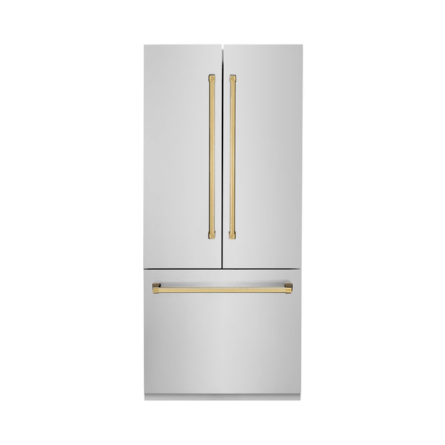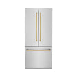 ZLINE Autograph Edition 36 in. 19.6 cu. ft. French Door Built-In Bottom Freezer Refrigerator with Water Dispenser and Ice Maker in Stainless Steel with Polished Gold Accents (RBIVZ-304-36-G)