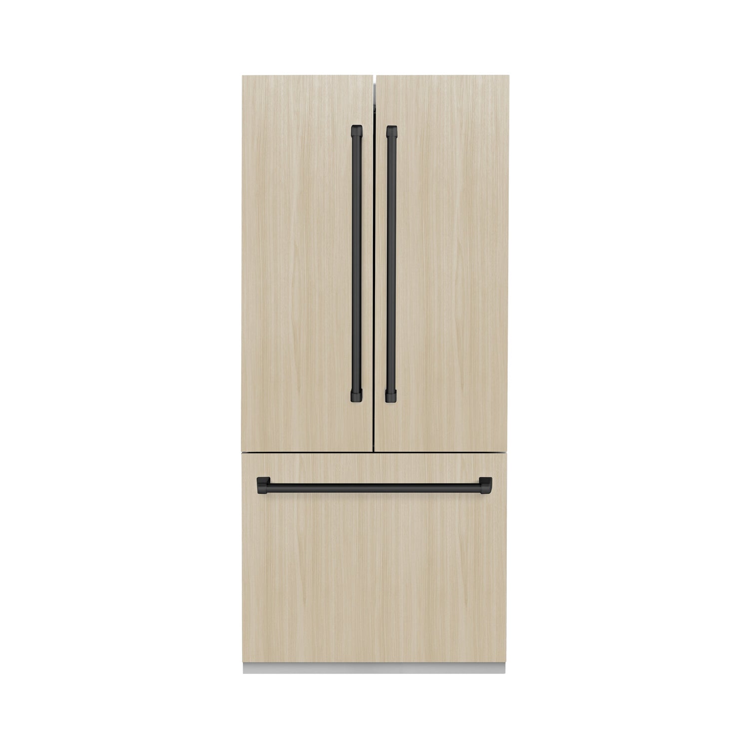 ZLINE Autograph Edition 36 in. 19.6 cu. ft. Panel Ready French Door Built-In Bottom Freezer Refrigerator with Water Dispenser and Ice Maker with Matte Black Accents (RBIVZ-36-MB)
