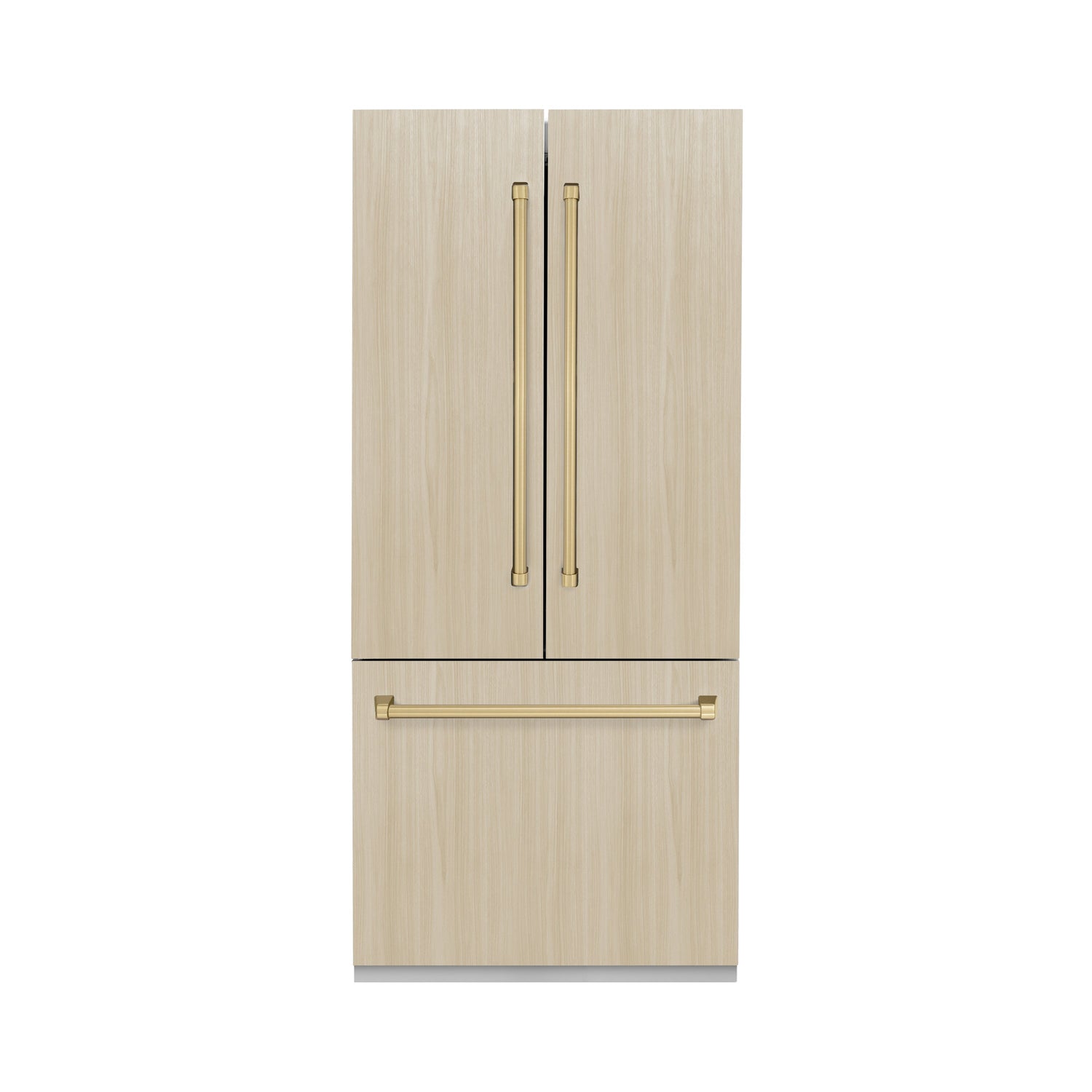 ZLINE Autograph Edition 36 in. 19.6 cu. ft. Panel Ready French Door Built-In Bottom Freezer Refrigerator with Water Dispenser and Ice Maker with Stainless Steel Interior and Champagne Bronze Accents (SRBIVZ-36-CB)