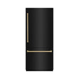 ZLINE Autograph Edition 36 in. 19.8 cu. ft. Built-In Bottom Freezer Refrigerator with Water Dispenser and Ice Maker in Black Stainless Steel and Champagne Bronze Accents (RBITZ-BS-36-CB)