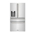 ZLINE Autograph Edition 36 in. 21.6 cu. ft. Counter-Depth French Door Refrigerator with Water and Ice Dispenser in Fingerprint-Resistant Stainless Steel with Polished Nickel Helix Handles (RFMZ-W-36-KPN) is backordered and will ship as soon as it is back in stock.
