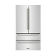 ZLINE Autograph Edition 36 in. 22.5 cu. ft. Counter-Depth French Door Refrigerator with Ice Maker in Fingerprint-Resistant Stainless Steel and Polished Nickel Helix Handles (RFMZ-36-KPN)