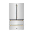 ZLINE Autograph Edition 36 in. 22.5 cu. ft. Counter-Depth French Door Refrigerator with Ice Maker in Fingerprint-Resistant Stainless Steel with Champagne Bronze Traditional Handles (RFMZ-36-CB)