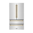 ZLINE Autograph Edition 36 in. 22.5 cu. ft. Counter-Depth French Door Refrigerator with Ice Maker in Fingerprint-Resistant Stainless Steel with Polished Gold Traditional Handles (RFMZ-36-G)