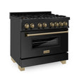ZLINE Autograph Edition 36 in. 4.6 cu. ft. Legacy Dual Fuel Range with 6 Burner Gas Cooktop and Electric Convection Oven in Black Stainless Steel and Champagne Bronze Accents (RABZ-36-CB)