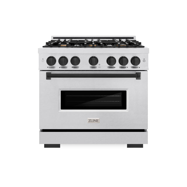 ZLINE Autograph Edition 36 in. 5.2 cu. ft. Classic Dual Fuel Range with 6 Burner Gas Cooktop and Electric Convection Oven in Satin Stainless Steel with Matte Black Accents (CDRSZ-36-MB)