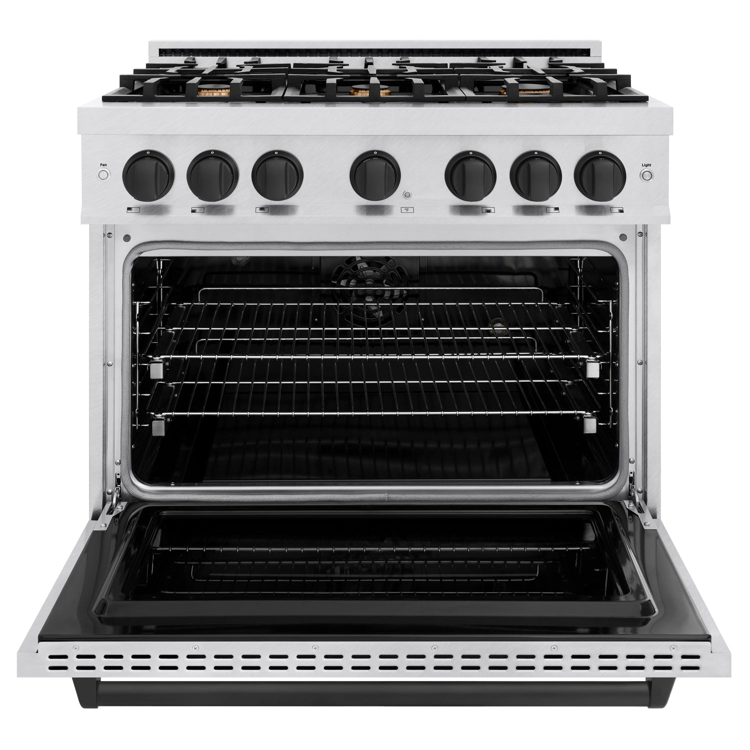 Luxury isn’t meant to be left desired—it’s meant to be attainable. The ZLINE Autograph Edition 36 in. 5.2 cu. ft. Classic Dual Fuel Range with 6 Burner Gas Cooktop and Electric Convection Oven in Satin Stainless Steel with Matte Black Accents (CDRSZ-36-MB) combines the elegance of a hand-finished porcelain gas cooktop with 6 Italian-made auto-reignition burners, an electric convection oven with an energy-efficient cooling fan to ensure quiet operation, a Landscape oven door window design, and stunning matte black knobs and handle allowing you to master every meal. With a modern, timeless style and refined functionality, ZLINE Classic Dual Fuel Ranges are masterfully crafted to deliver an elevated culinary experience.