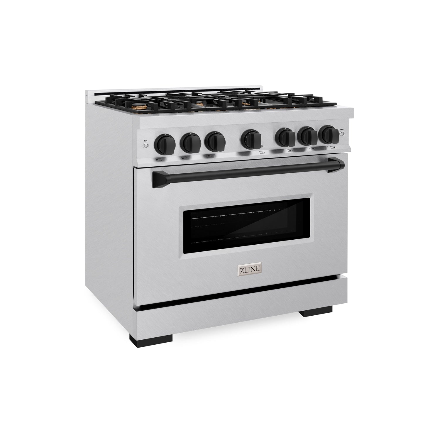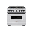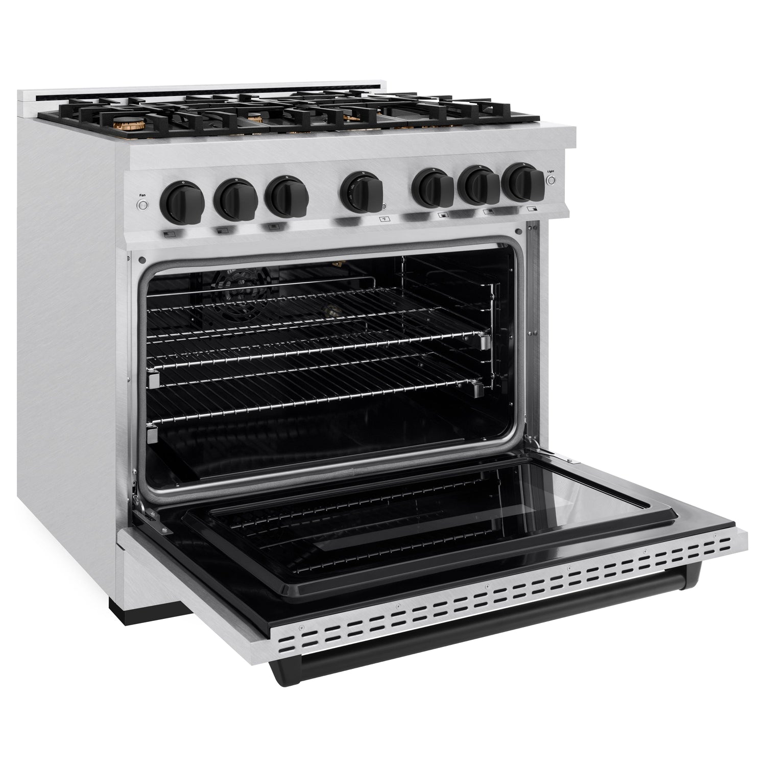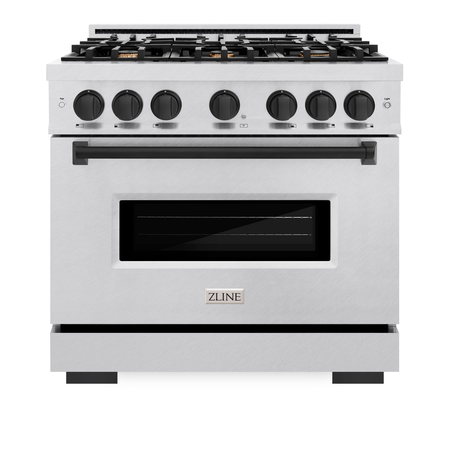 ZLINE Autograph Edition 36 in. 5.2 cu. ft. Classic Gas Range with 6 Burner Cooktop and Convection Gas Oven in Satin Stainless Steel and Matte Black Accents (CGRSZ-36-MB)