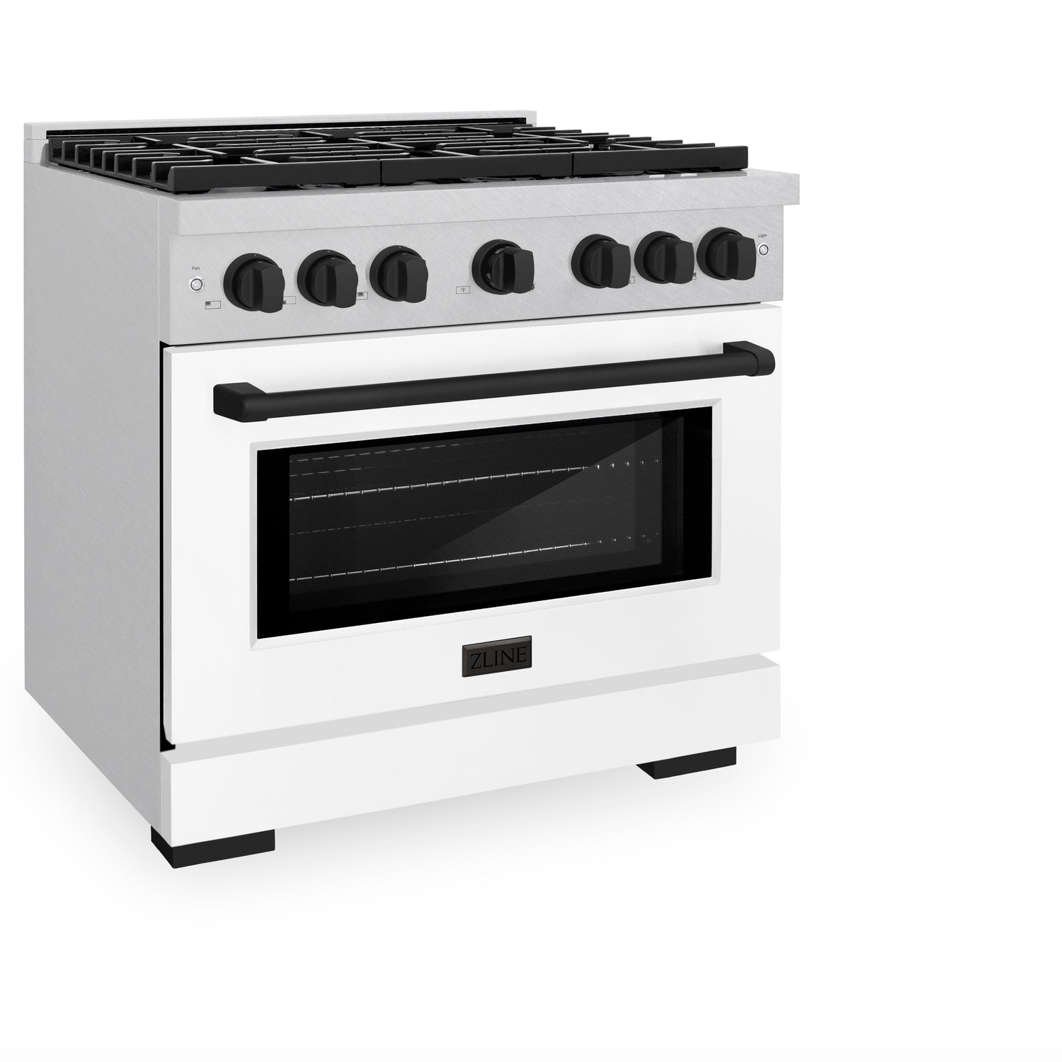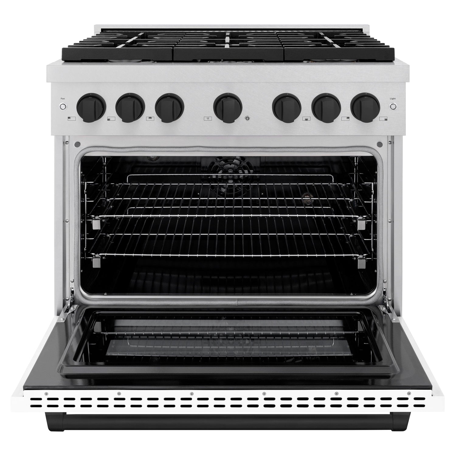 ZLINE Autograph Edition 36 in. 5.2 cu. ft. Paramount Dual Fuel Range with 6 Burner Gas Cooktop and Electric Convection Oven in Satin Stainless Steel with White Matte Door and Matte Black Accents (SDRSZ-WM-36-MB)