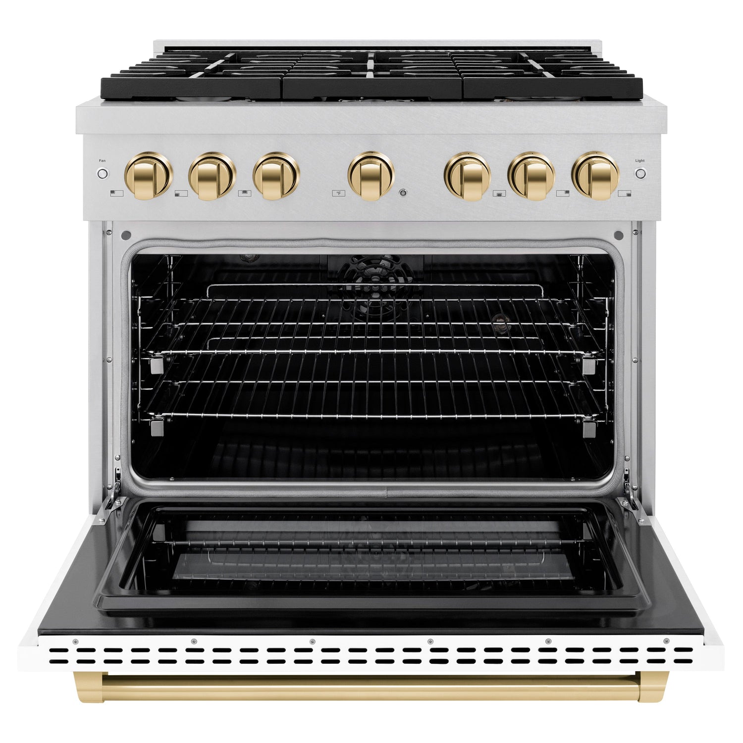 - Exclusive Knobs and Handle - Customize your ZLINE Autograph Edition Dual Fuel Range with elegant Polished Gold knob and handle accents