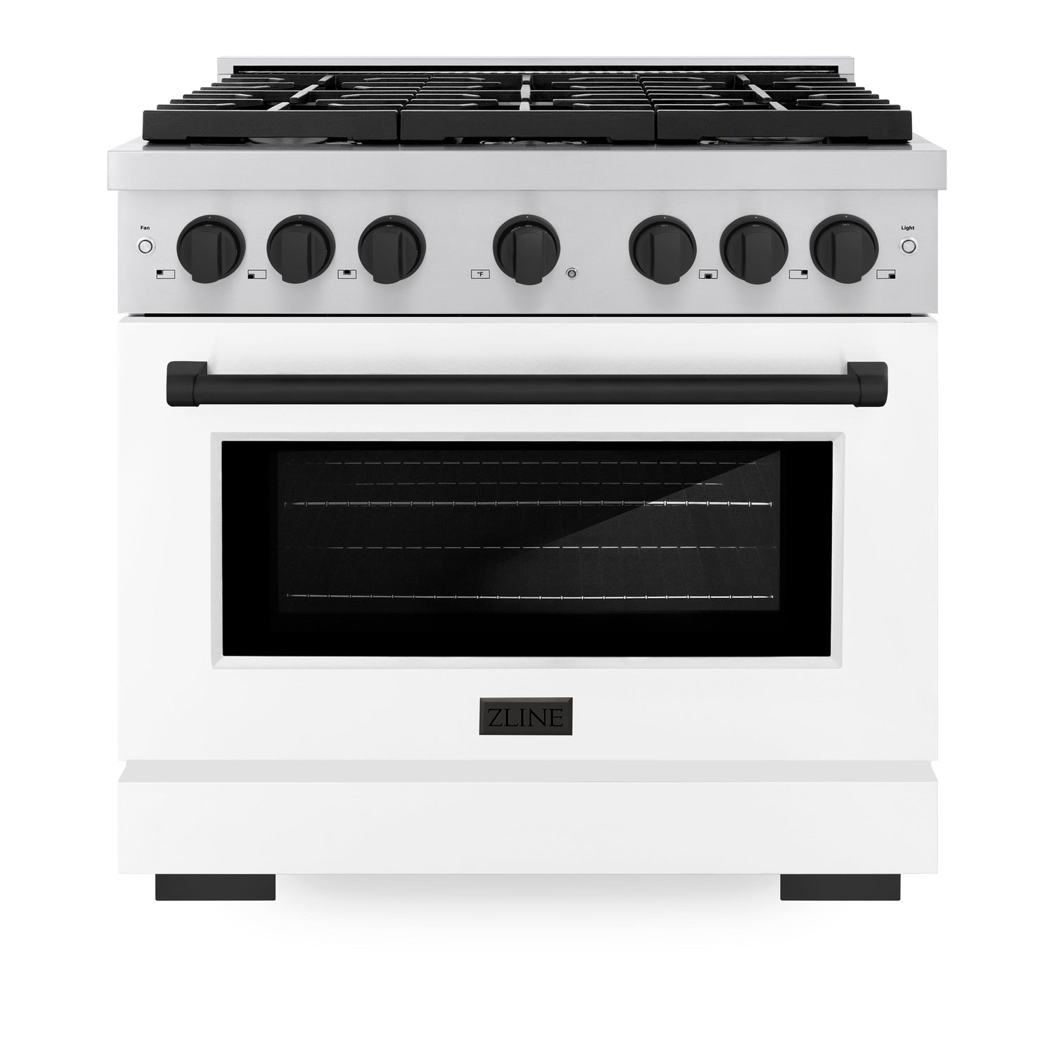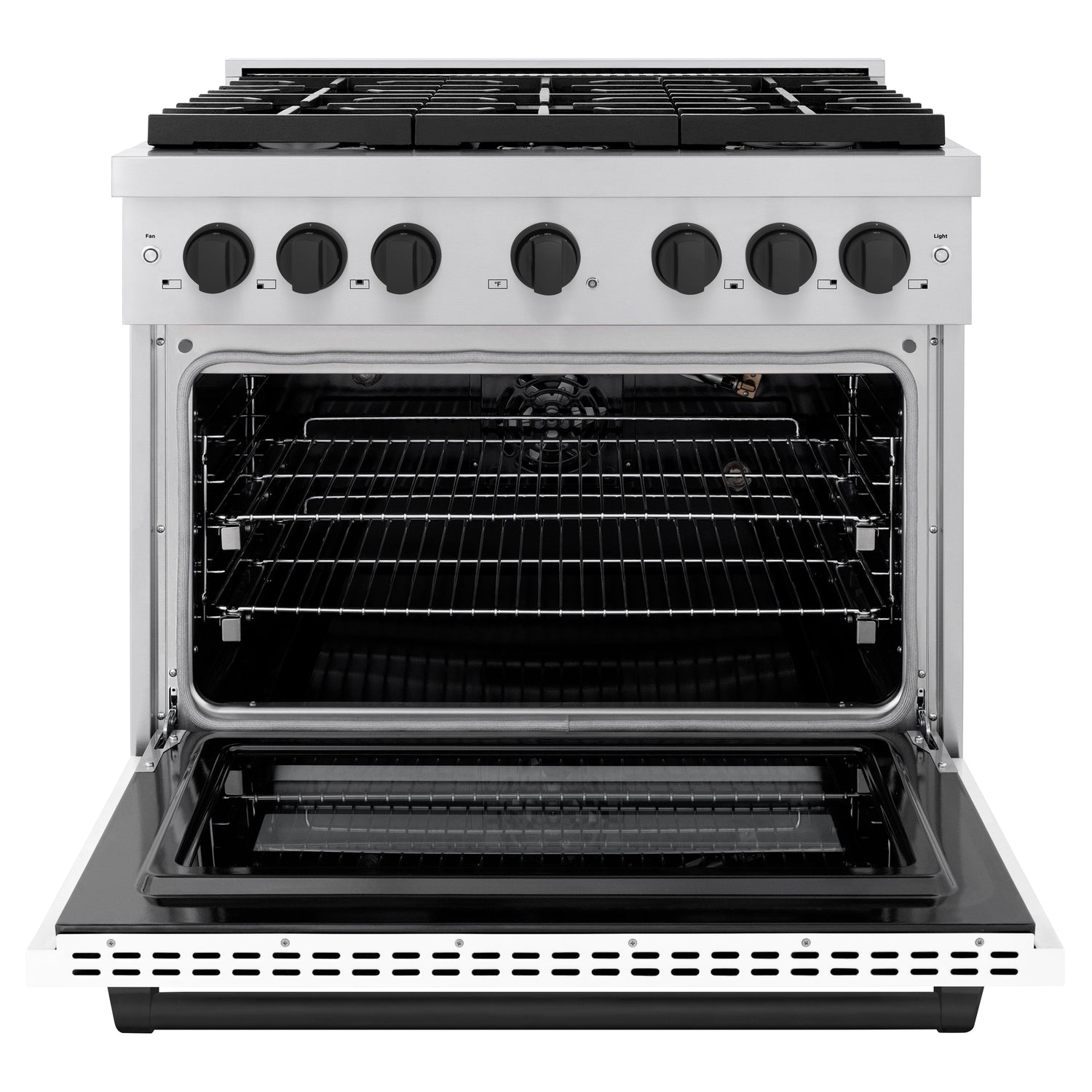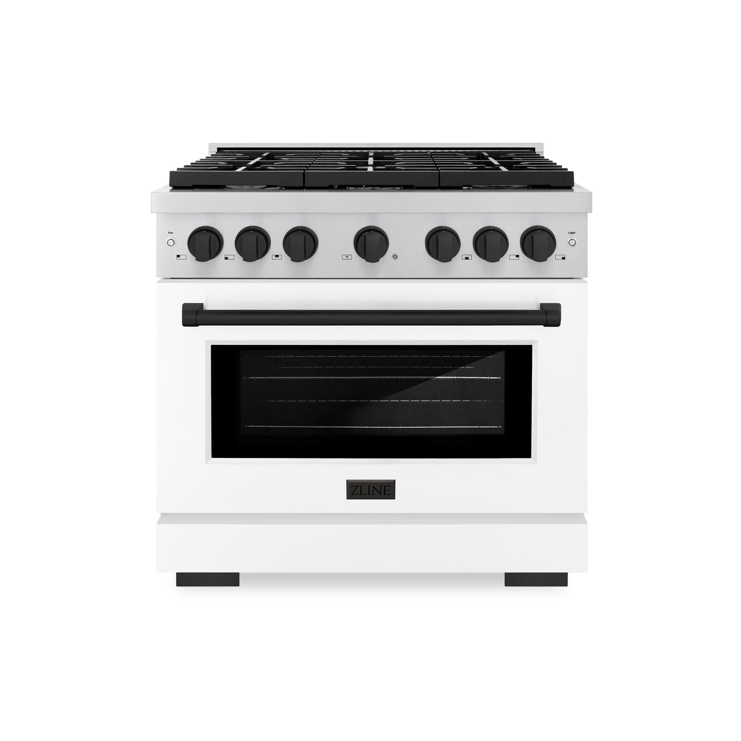 ZLINE Autograph Edition 36 in. 5.2 cu. ft. Paramount Gas Range with 6 Burner Cooktop and Convection Gas Oven in Stainless Steel with White Matte Door and Matte Black Accents (SGRZ-WM-36-MB)