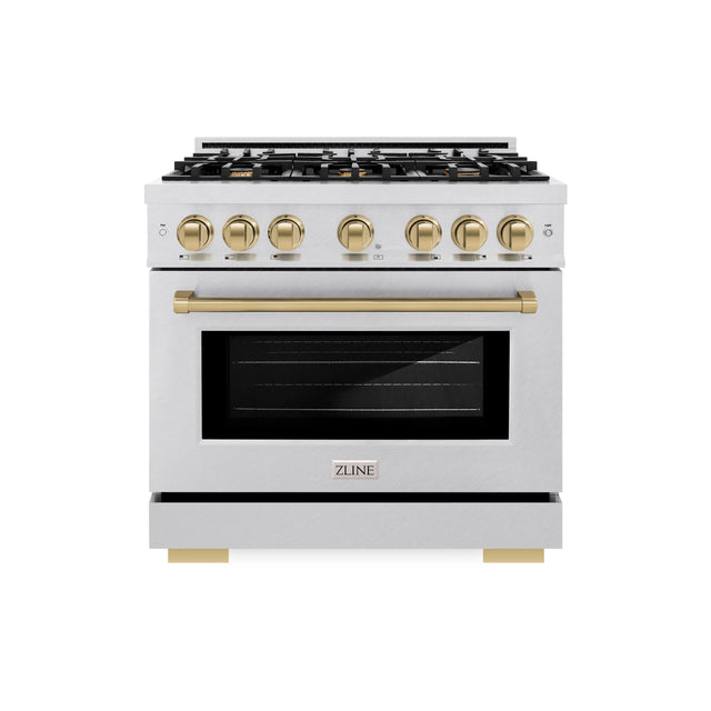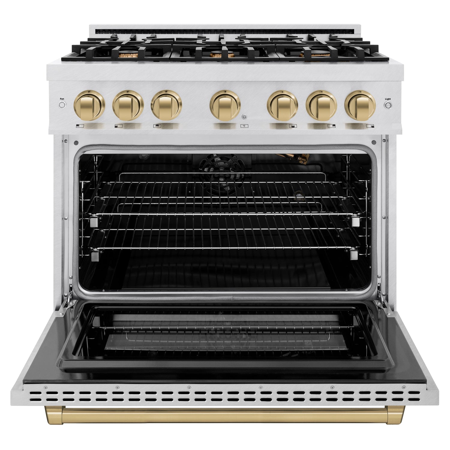 ZLINE Autograph Edition 36 in. 5.2 cu. ft. Select Gas Range with 6 Burner Cooktop and Convection Gas Oven in Satin Stainless Steel and Champagne Bronze Accents (HGRSZ-36-CB)