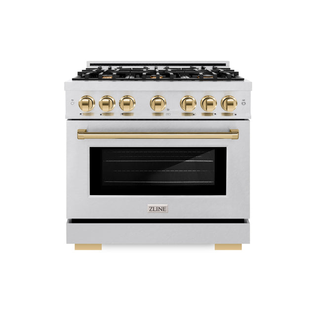 ZLINE Autograph Edition 36 in. 5.2 cu. ft. Select Gas Range with 6 Burner Cooktop and Convection Gas Oven in Satin Stainless Steel and Polished Gold Accents (HGRSZ-36-G)