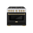ZLINE Autograph Edition 36 in. 5.2 cu. ft. Select Gas Range with 6 Burner Cooktop and Convection Gas Oven in Stainless Steel with Black Matte Door and Champagne Bronze Accents (HGRZ-BLM-36-CB)
