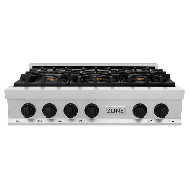 ZLINE Autograph Edition 36 in. Legacy Gas Rangetop with 6 Burners and Porcelain Cooktop in Satin Stainless Steel with Matte Black Accents (RTSZ-36-MB)
