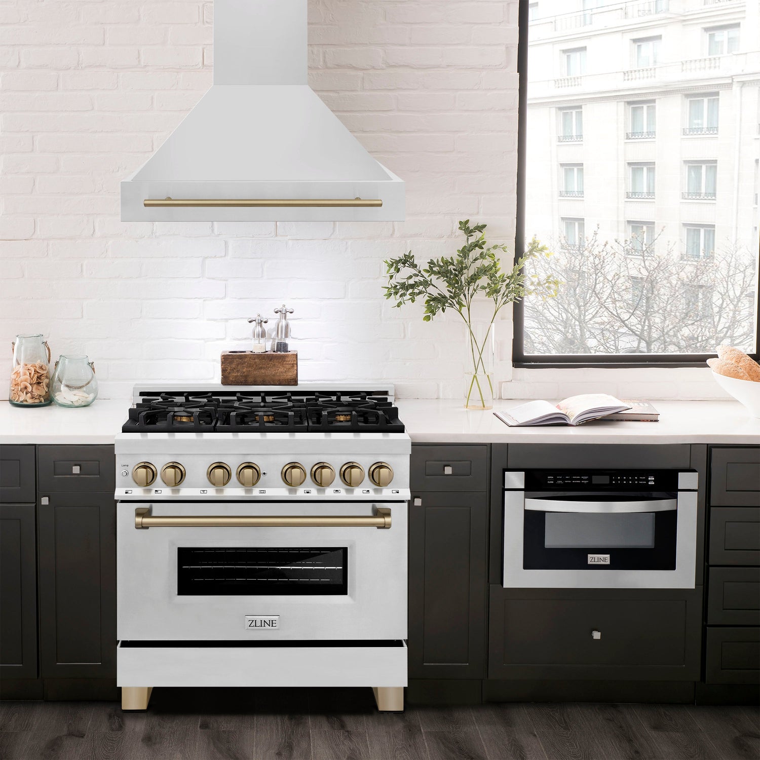 ZLINE Autograph Edition 36" Stainless Steel Range Hood with Stainless Steel Shell and Champagne Bronze Handle (8654STZ-36-CB)