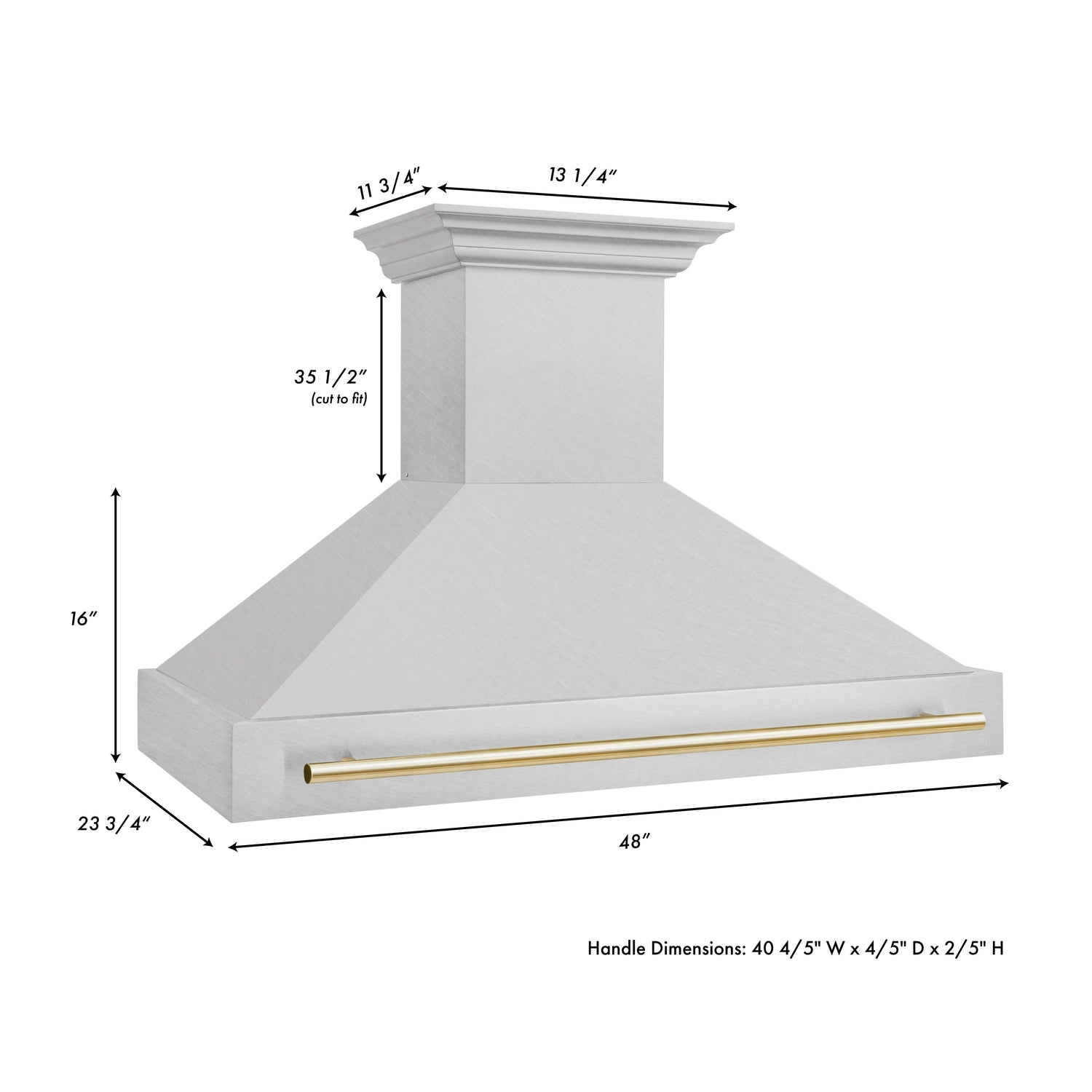 ZLINE Autograph Edition 48" Fingerprint Resistant Stainless Steel Range Hood with Polished Gold Handle (8654SNZ-48-G)
