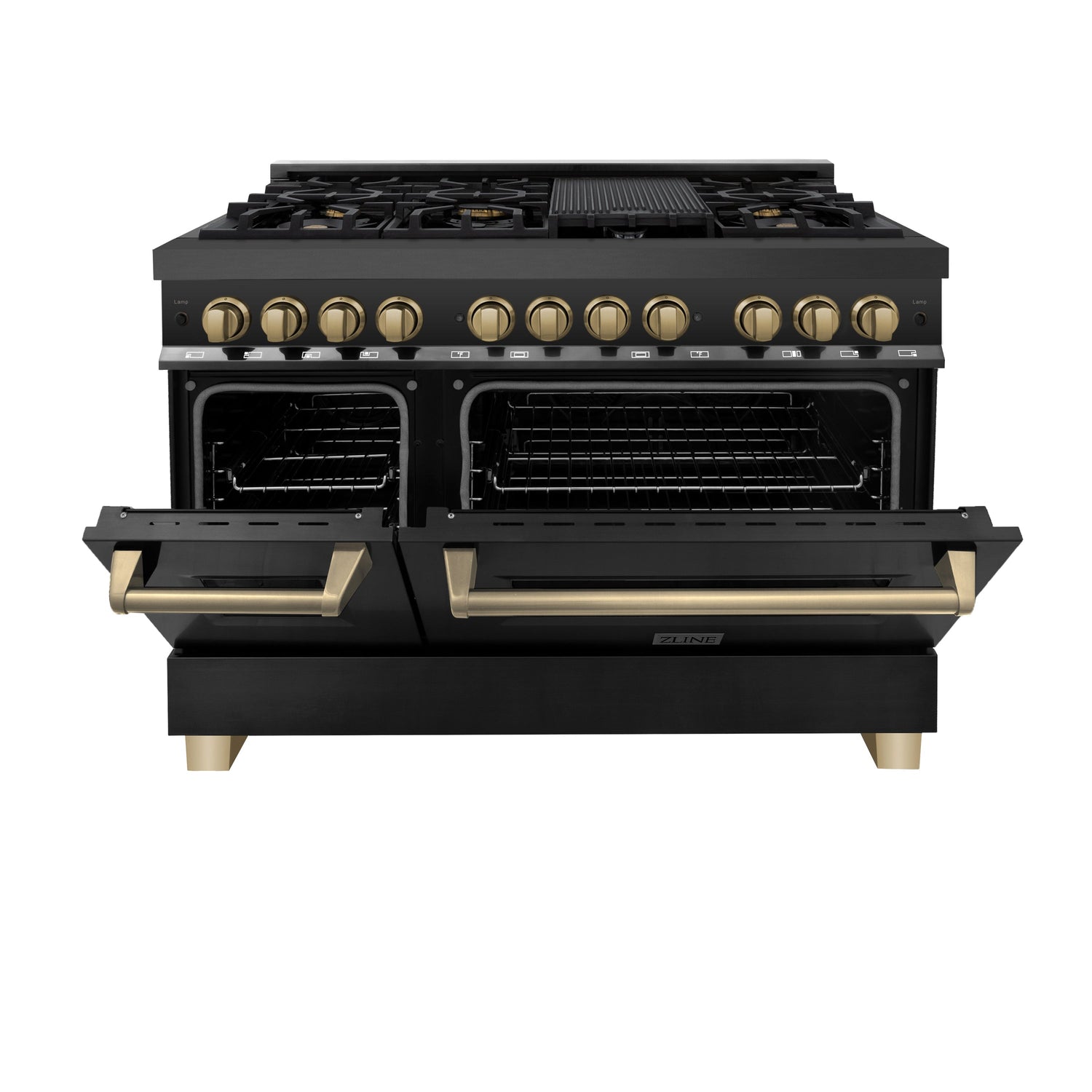 ZLINE Autograph Edition 48 in. 6.0 cu. ft. Legacy Dual Fuel Range with 7 Burner Gas Cooktop and 2 Electric Ovens in Black Stainless Steel and Champagne Bronze Accents (RABZ-48-CB)