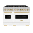 ZLINE Autograph Edition 48 in. 6.7 cu. ft. Classic Double Oven Dual Fuel Range with 8 Burner Gas Cooktop in Satin Stainless Steel with White Matte Doors and Champagne Bronze Accents (CDRSZ-WM-48-CB)