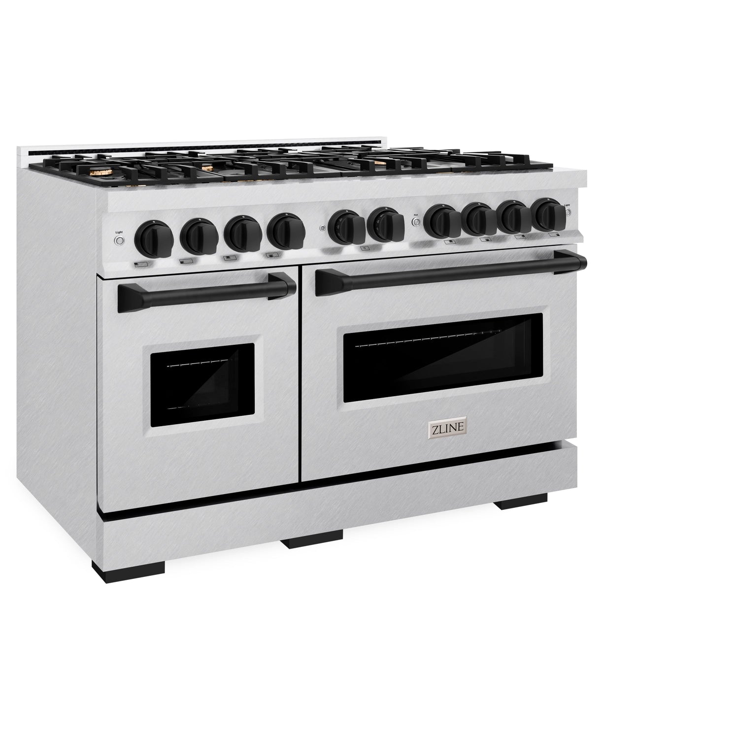 ZLINE Autograph Edition 48 in. 6.7 cu. ft. Classic Double Oven Dual Fuel Range with 8 Burner Gas Cooktop in Satin Stainless Steel with White Matte Doors and Matte Black Accents (CDRSZ-WM-48-MB)