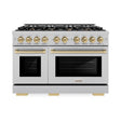 ZLINE Autograph Edition 48 in. 6.7 cu. ft. Select Double Oven Dual Fuel Range with 8 Burner Gas Cooktop in Satin Stainless Steel and Champagne Bronze Accents (HDRSZ-48-CB)