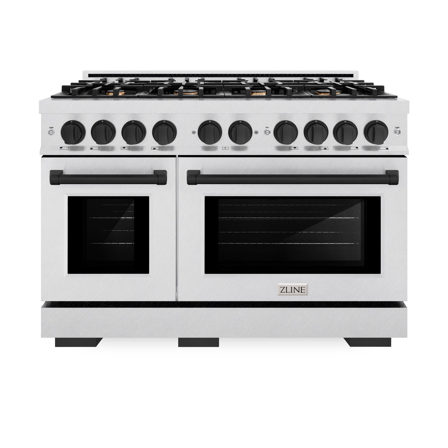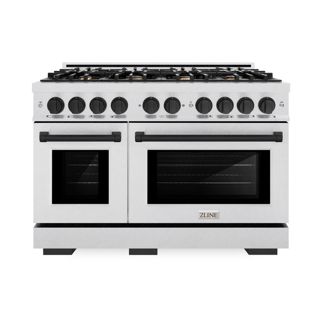ZLINE Autograph Edition 48 in. 6.7 cu. ft. Select Double Oven Dual Fuel Range with 8 Burner Gas Cooktop in Satin Stainless Steel and Matte Black Accents (HDRSZ-48-MB)