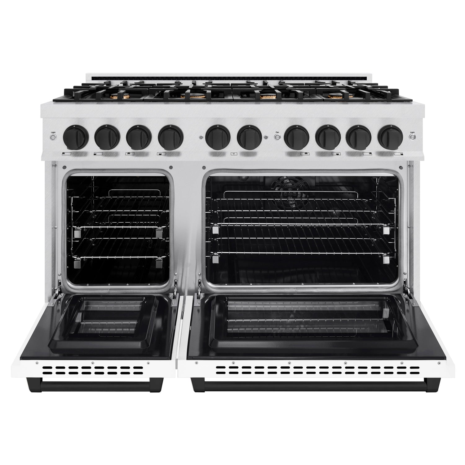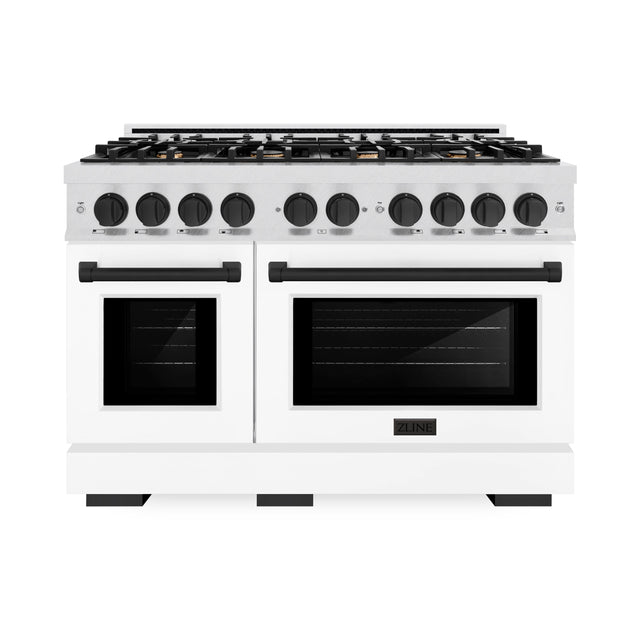 ZLINE Autograph Edition 48 in. 6.7 cu. ft. Select Double Oven Dual Fuel Range with 8 Burner Gas Cooktop in Satin Stainless Steel with White Matte Doors and Matte Black Accents (HDRSZ-WM-48-MB)