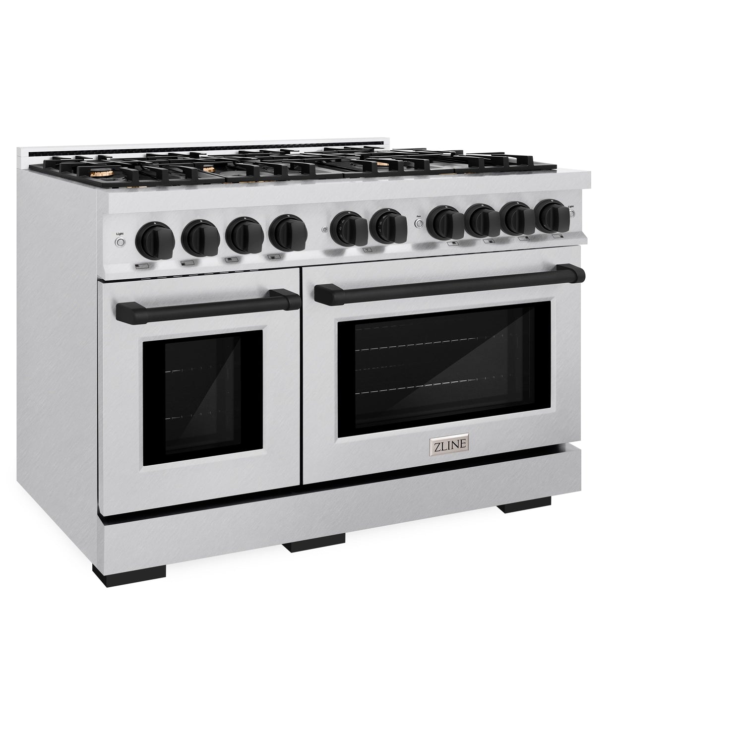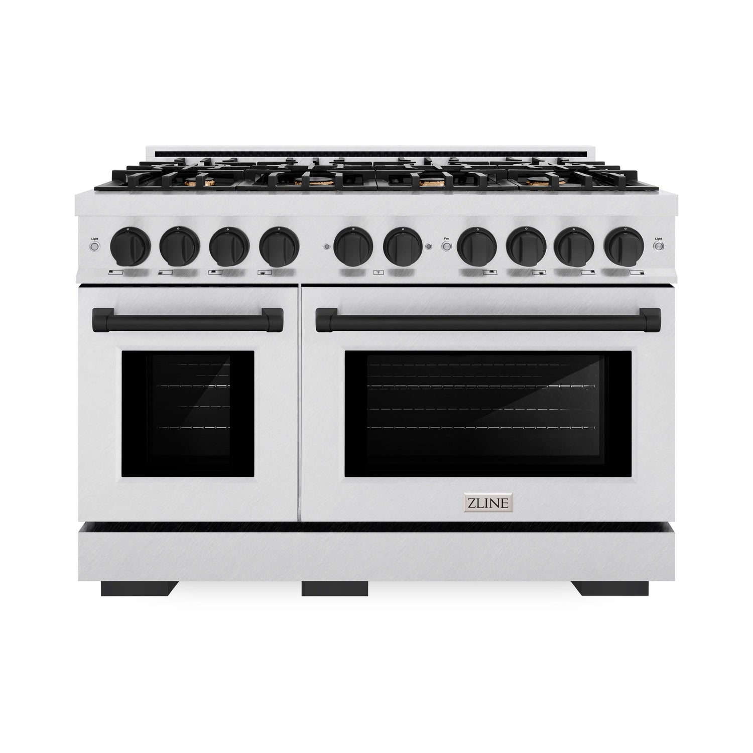 ZLINE Autograph Edition 48 in. 6.7 cu. ft. Select Double Oven Gas Range with 8 Burner Cooktop in Satin Stainless Steel and Matte Black Accents (HGRSZ-48-MB)