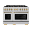 ZLINE Autograph Edition 48 in. 6.7 cu. ft. Select Double Oven Gas Range with 8 Burner Cooktop in Satin Stainless Steel and Polished Gold Accents (HGRSZ-48-G)