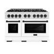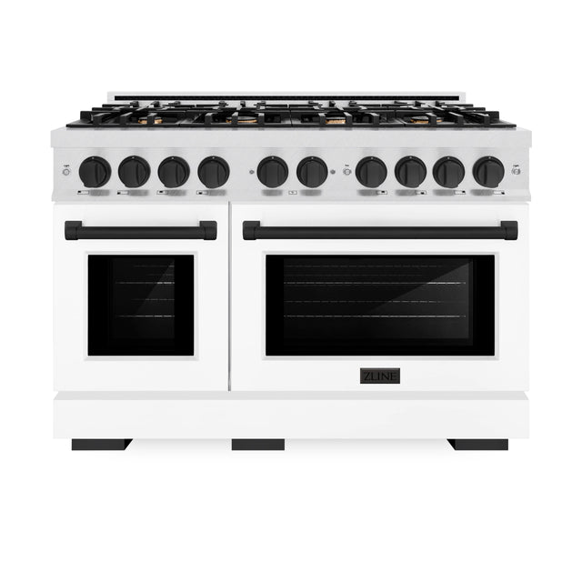 ZLINE Autograph Edition 48 in. 6.7 cu. ft. Select Double Oven Gas Range with 8 Burner Cooktop in Satin Stainless Steel with White Matte Doors and Matte Black Accents (HGRSZ-WM-48-MB)