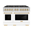 ZLINE Autograph Edition 48 in. 6.7 cu. ft. Select Double Oven Gas Range with 8 Burner Cooktop in Satin Stainless Steel with White Matte Doors and Polished Gold Accents (HGRSZ-WM-48-G)