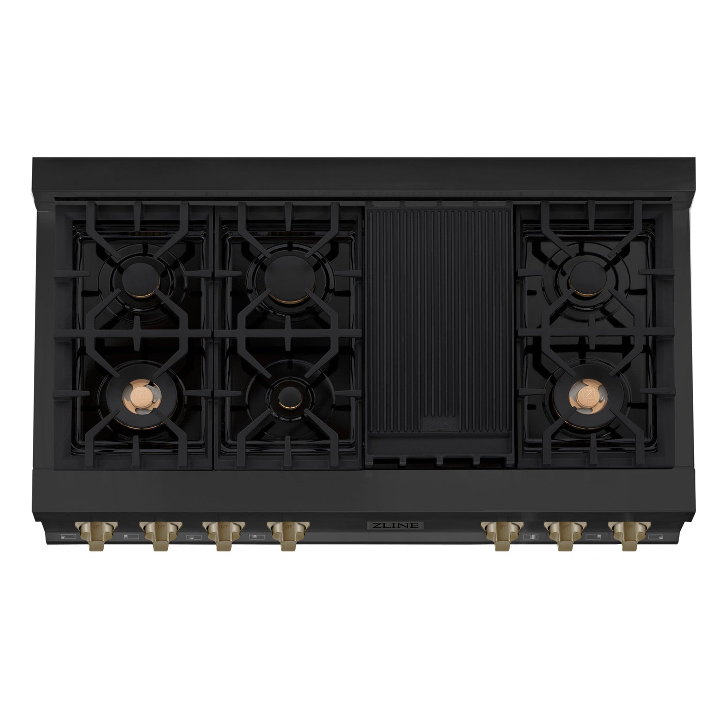 ZLINE Autograph Edition 48 in. Legacy Gas Rangetop with 7 Burners and Porcelain Cooktop in Black Stainless Steel with Champagne Bronze Accents (RTBZ-48-CB)
