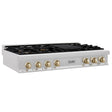 ZLINE Autograph Edition 48 in. Legacy Gas Rangetop with 7 Burners and Porcelain Cooktop in Satin Stainless Steel with Polished Gold Accents (RTSZ-48-G)
