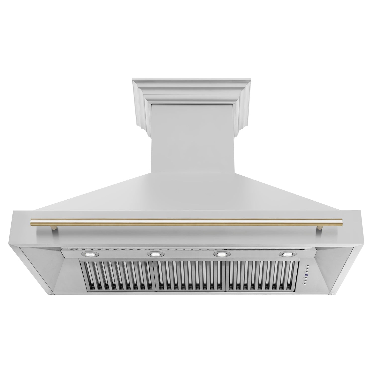 ZLINE Autograph Edition 48 in. Stainless Steel Range Hood with Stainless Steel Shell and Polished Gold Handle (8654STZ-48-G)