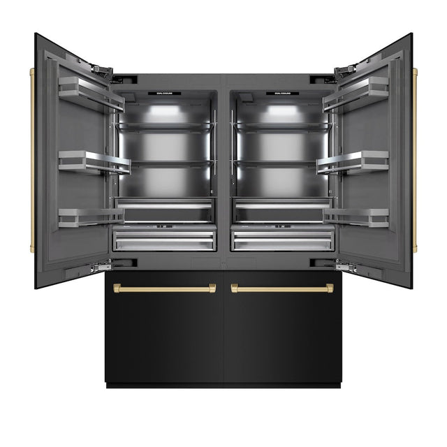 ZLINE Autograph Edition 60 in. 32.2 cu. ft. French Door Built-In Bottom Freezer Refrigerator with Water Dispenser and Ice Maker in Black Stainless Steel with Graphite Gray Interior and Champagne Bronze Accents (GRBIVZ-BS-60-CB)