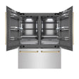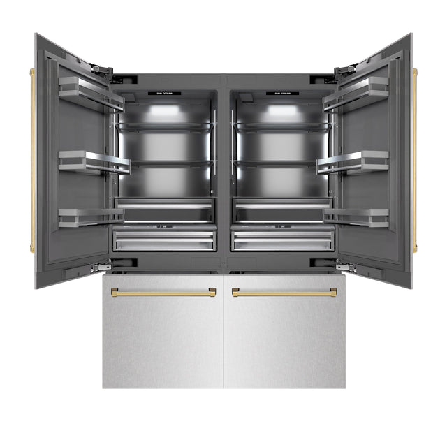 ZLINE Autograph Edition 60 in. 32.2 cu. ft. French Door Built-In Bottom Freezer Refrigerator with Water Dispenser and Ice Maker in Satin Stainless Steel with Graphite Gray Interior and Polished Gold Accents (GRBIVZ-SN-60-G)