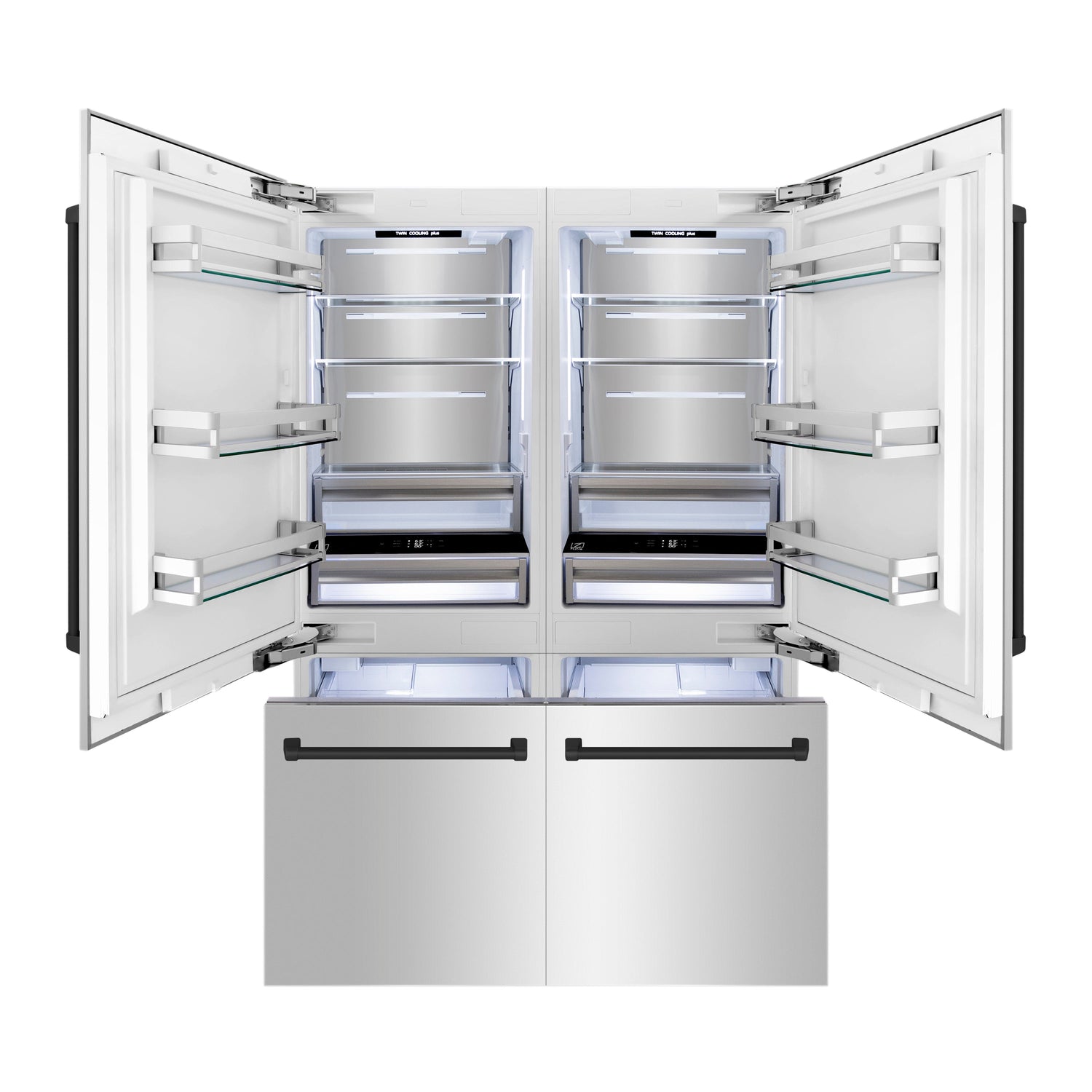 ZLINE Autograph Edition 60 in. 32.2 cu. ft. French Door Built-In Bottom Freezer Refrigerator with Water Dispenser and Ice Maker in Stainless Steel with Matte Black Accents (RBIVZ-304-60-MB)