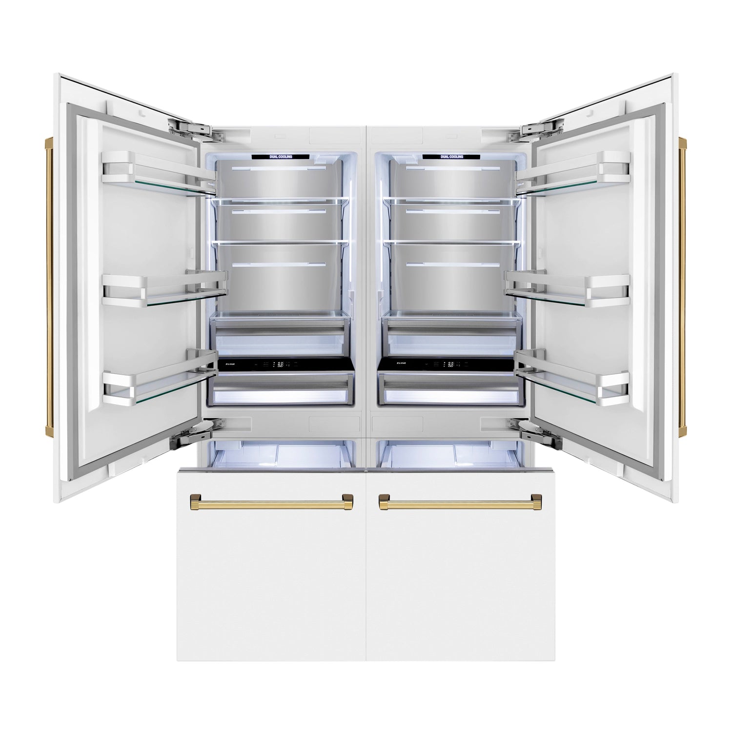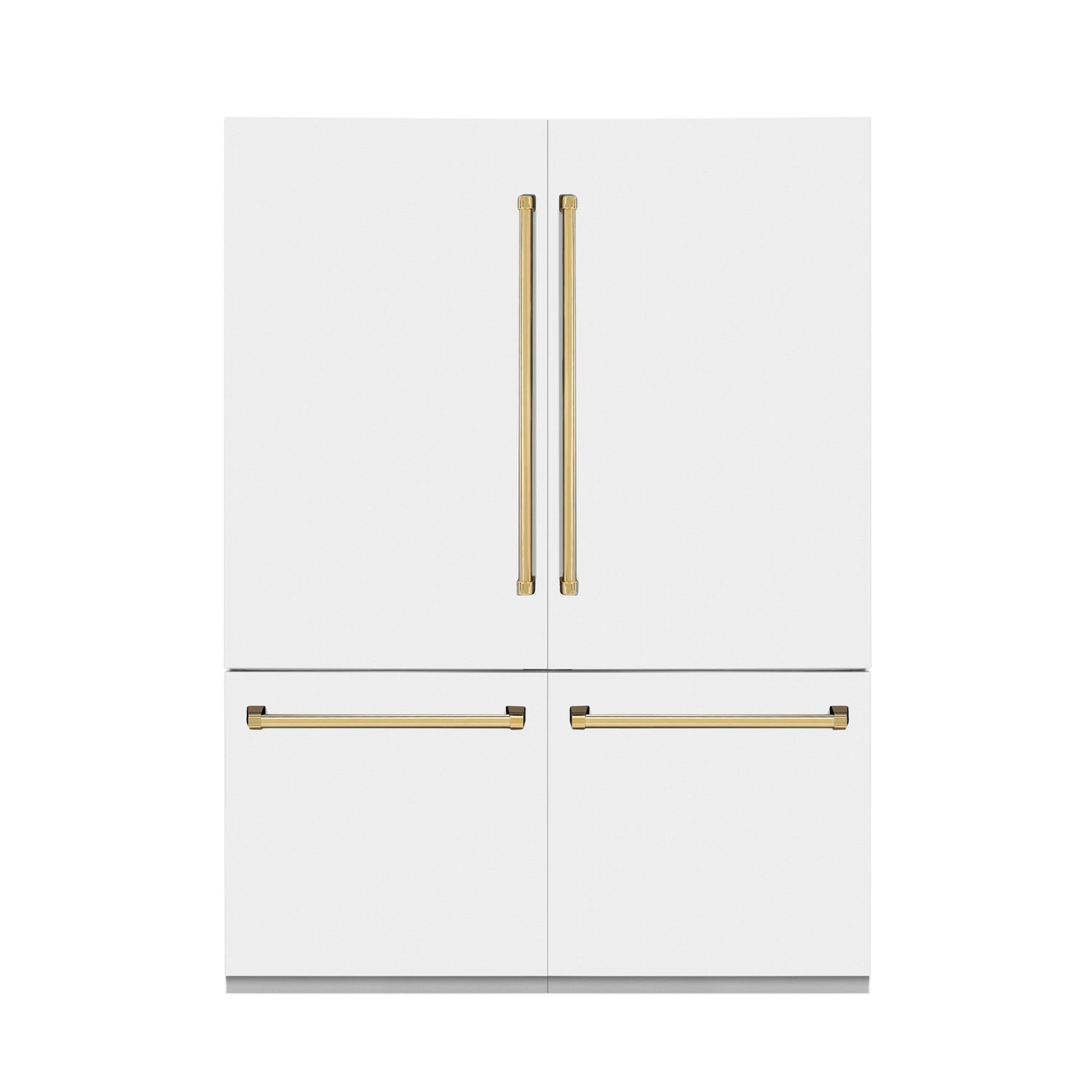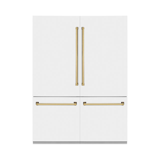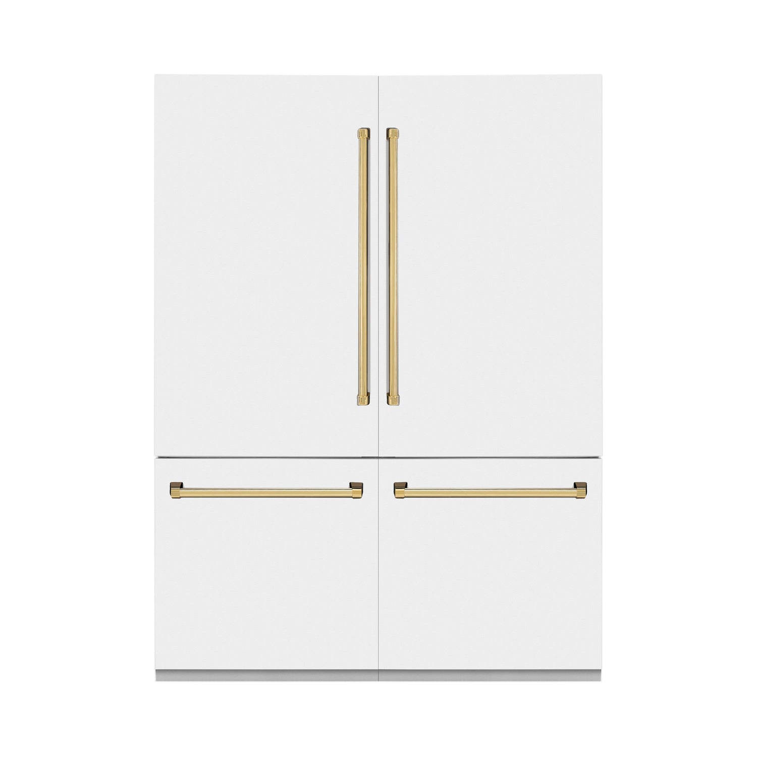 ZLINE Autograph Edition 60 in. 32.2 cu. ft. French Door Built-In Bottom Freezer Refrigerator with Water Dispenser and Ice Maker in White Matte with Polished Gold Accents (RBIVZ-WM-60-G)