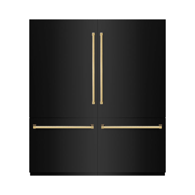 ZLINE Autograph Edition 72 in. 39.6 cu. ft. French Door Built-In Bottom Freezer Refrigerator with Water Dispensers and Ice Makers in Black Stainless Steel and Polished Gold Accents (RBITZ-BS-72-G)