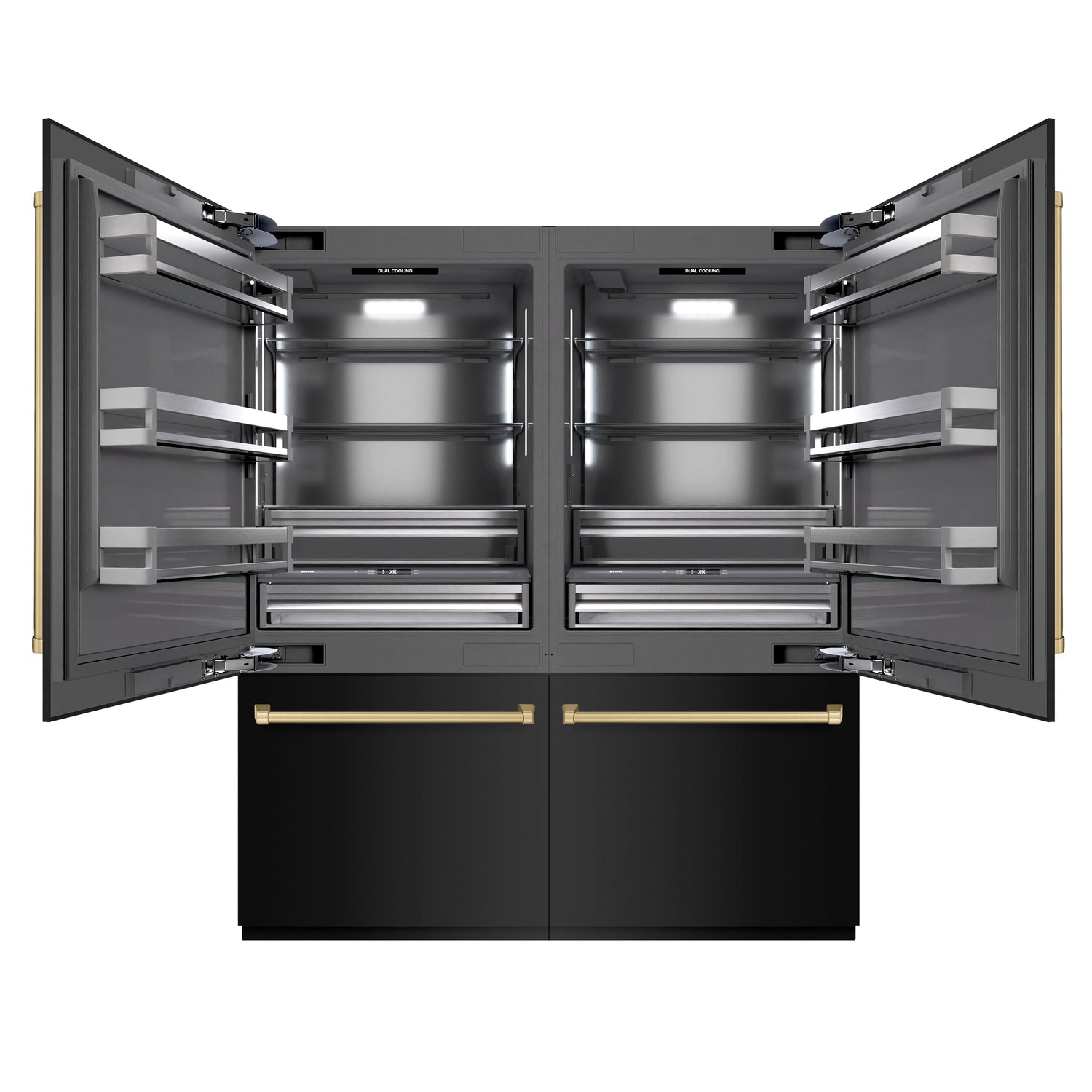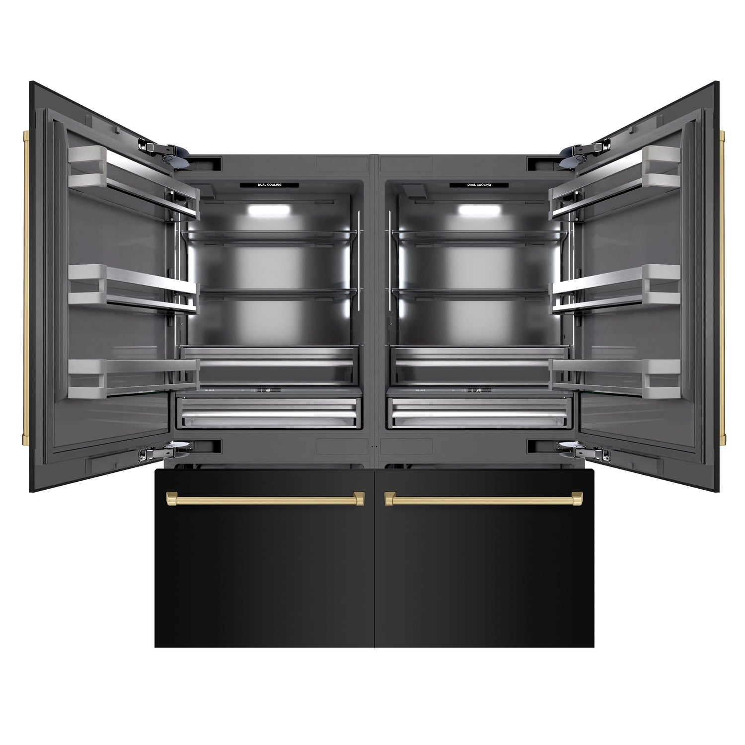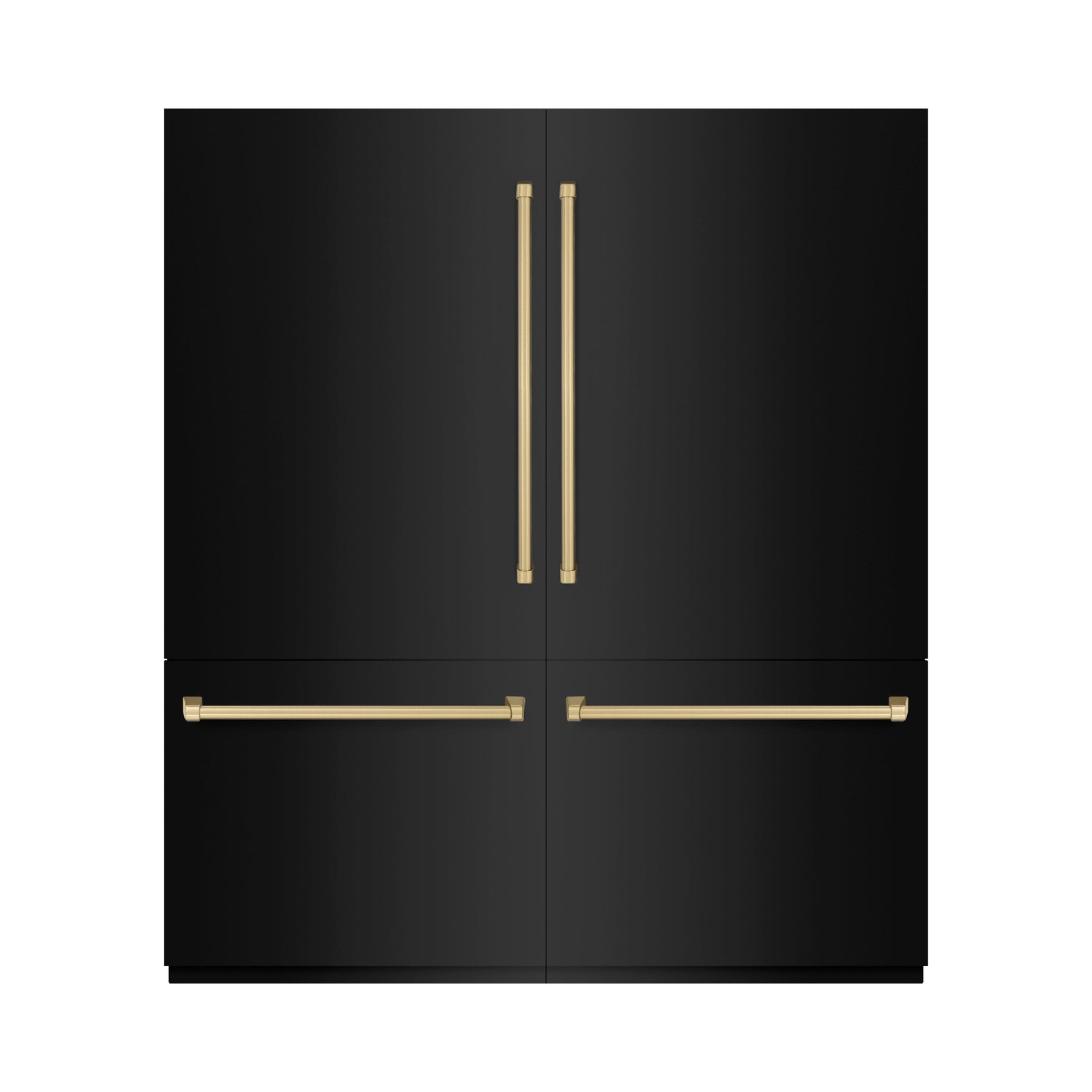 ZLINE Autograph Edition 72 in. 39.6 cu. ft. French Door Built-In Bottom Freezer Refrigerator with Water Dispensers and Ice Makers in Black Stainless Steel with Graphite Gray Interior and Champagne Bronze Accents (GRBITZ-BS-72-CB)