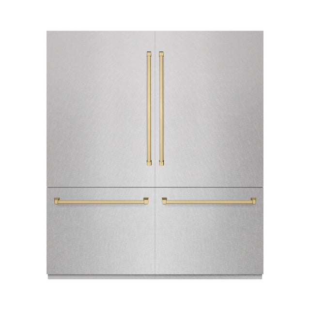 ZLINE Autograph Edition 72 in. 39.6 cu. ft. French Door Built-In Bottom Freezer Refrigerator with Water Dispensers and Ice Makers in Satin Stainless Steel and Champagne Bronze Accents (RBITZ-SN-72-CB)