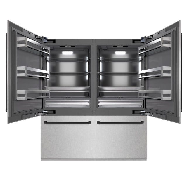 ZLINE Autograph Edition 72 in. 39.6 cu. ft. French Door Built-In Bottom Freezer Refrigerator with Water Dispensers and Ice Makers in Satin Stainless Steel with Graphite Gray Interior and Matte Black Accents (GRBITZ-SN-72-MB)