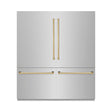 ZLINE Autograph Edition 72 in. 39.6 cu. ft. French Door Built-In Bottom Freezer Refrigerator with Water Dispensers and Ice Makers in Stainless Steel with Polished Gold Accents (RBITZ-304-72G)