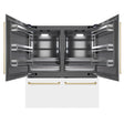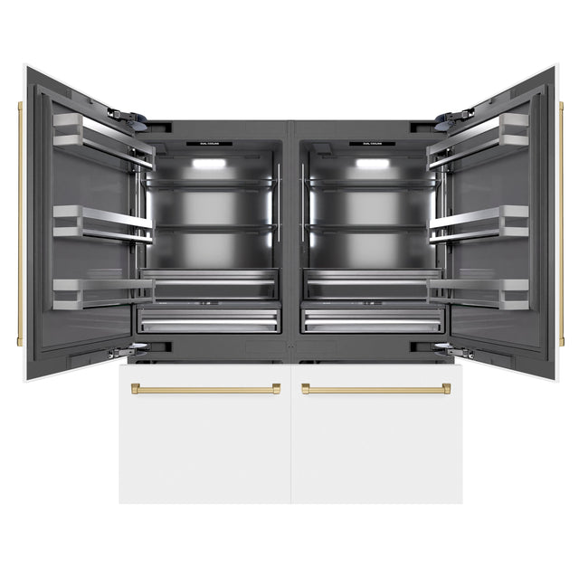 ZLINE Autograph Edition 72 in. 39.6 cu. ft. French Door Built-In Bottom Freezer Refrigerator with Water Dispensers and Ice Makers in White Matte with Graphite Gray Interior and Champagne Bronze Accents (GRBITZ-WM-72-CB)