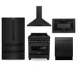 ZLINE Kitchen Package with Black Stainless Steel Refrigeration, 30 in. Gas Range, 30 in. Range Hood, Microwave Drawer, and 24 in. Tall Tub Dishwasher (5KPR-RGBRH-MWDWV)