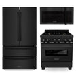 ZLINE Kitchen Package with Black Stainless Steel Refrigeration, 30 in. Gas Range and 30 in. Traditional Over the Range Microwave (3KPR-RGBOTRH30)