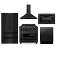 ZLINE Kitchen Package with Black Stainless Steel Refrigeration, 36 in. Gas Range, 36 in. Range Hood, Microwave Drawer, and 24 in. Tall Tub Dishwasher (5KPR-RGBRH36-MWDWV)