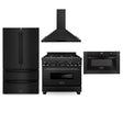 ZLINE Kitchen Package with Black Stainless Steel Refrigeration, 36 in. Gas Range and Microwave Drawer (4KPR-RGBRH36-MW)