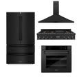 ZLINE Kitchen Package with Black Stainless Steel Refrigeration, 48 in. Rangetop, 48 in. Range Hood and 30 in. Single Wall Oven (4KPR-RTBRH48-AWS)