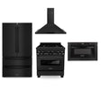 ZLINE Kitchen Package with Refrigeration, 30 in. Black Stainless Steel Gas Range, 30 in. Convertible Vent Range Hood and Microwave Drawer (4KPR-RGBRH30-MW)